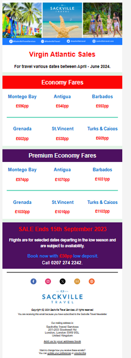 Amidst the challenges posed by the pandemic and the shift to remote work, Sackville Travel recognised the need to strengthen its digital presence. With social media platforms lying dormant and a dispersed workforce, the company sought to engage Spectra Marketing for assistance. The task at hand was clear: revitalise Sackville Travel's social media presence on Instagram and Facebook, while also orchestrating targeted email marketing campaigns to drive engagement and sales.